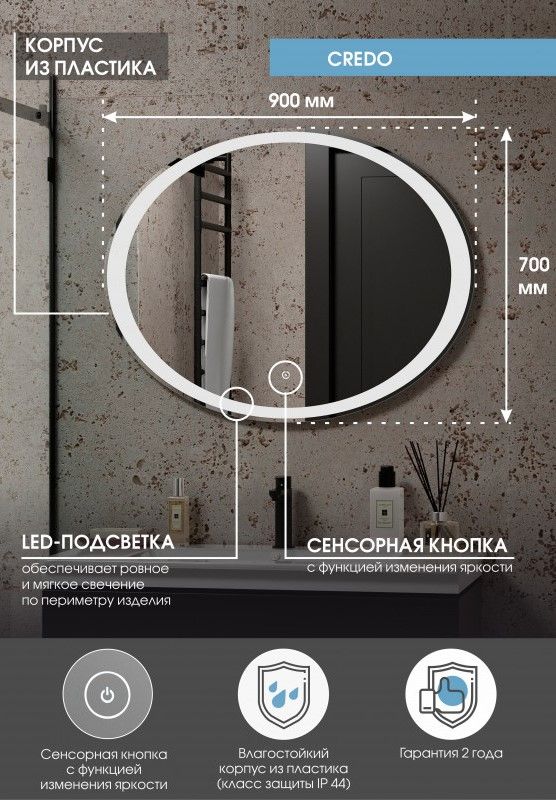 Зеркало "Credo Led" 900х700LED подсветка 6000Ксенсорный выключатель с функцией димирования