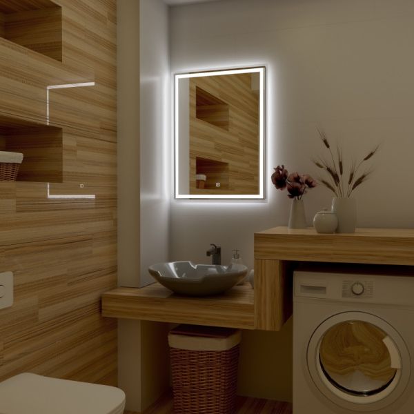 Зеркало "Fancy Led" 600x800LED подсветка 6000Ксенсорный выключатель с функцией димированияпрозрачный фацет по периметруакриловый короб