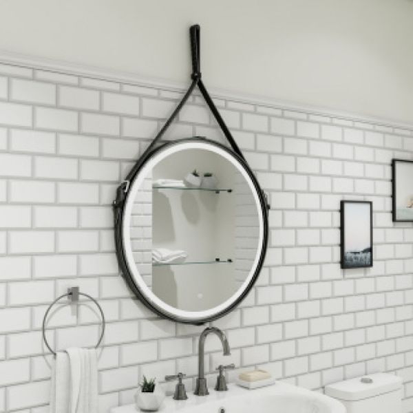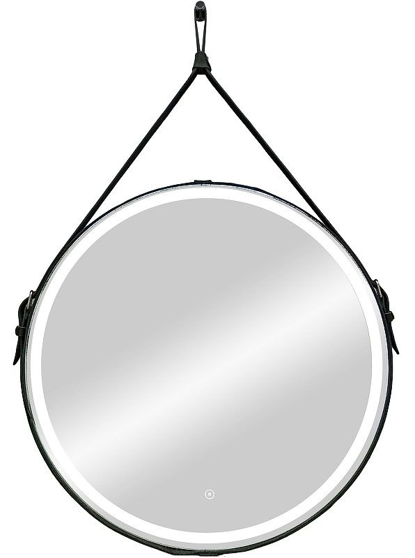 Зеркало "Millenium Black Led" D 800 на ремне из натуральной кожи черного цветаLED подсветка 6000Ксенсорный выключатель с функцией димированияремень из натуркожи черного цвета