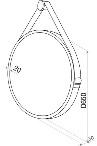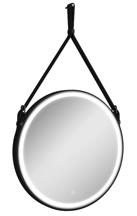 Зеркало "Millenium Black Led" D 500 на ремне из натуральной кожи черного цветаLED подсветка 6000Ксенсорный выключатель с функцией димированияремень из натуркожи черного цвета