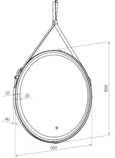 Зеркало "Millenium Black Led" D 500 на ремне из натуральной кожи черного цветаLED подсветка 6000Ксенсорный выключатель с функцией димированияремень из натуркожи черного цвета