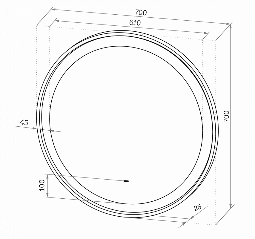Зеркало "Planet Black Led" D 700 с бесконтактным сенсоромLED подсветка 6000Кбесконтактный сенсор с функцией димированиярама - МДФкороб в черной пленке Soft touch.