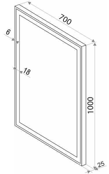 Зеркало "Strong Led" 700х1000LED подсветка 6000Ксенсорный выключатель с функцией димированияалюминиевый профиль серого цвета