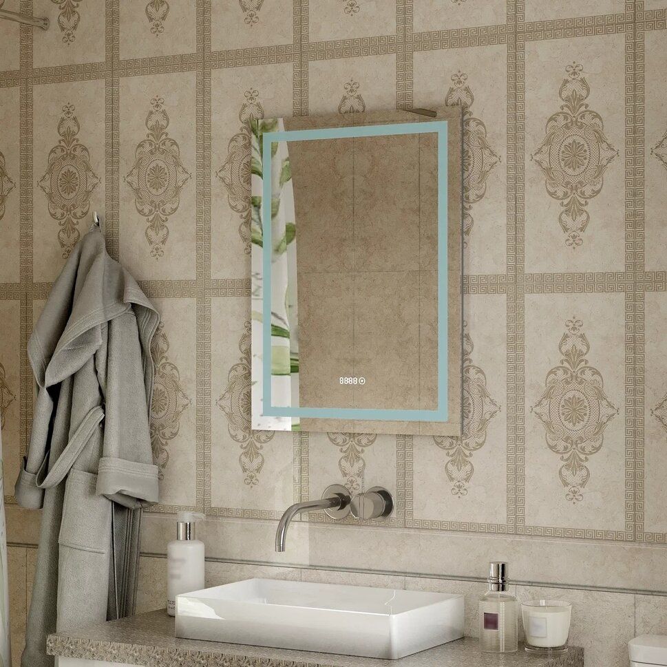 Зеркало "Verte Led" 600х800 с часами, датчиком движенияLED подсветка 6000Кдатчик движениявстроенные часы