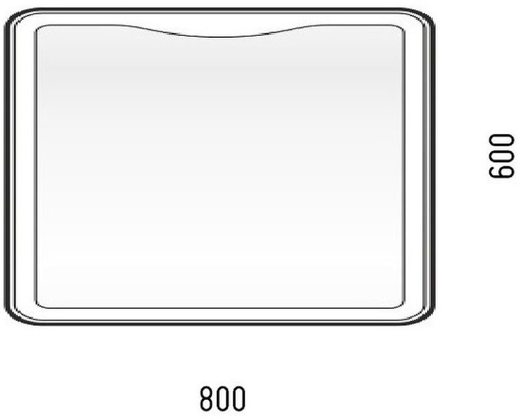 Зеркало "Орли" шириной 800 мм, высотой 600 мм. С отступом в 10 мм от края по всему периметру зеркала идёт область пескоструя шириной в 30 мм. Углы скруглены. Сверху зеркала - пескоструй в форме "чёлочки". Подсветка этой области осуществляется при помощи нажатия кнопки. Существует возможность регулировки освещенности (делать подсветку ярче или темнее). LED-подсветка, сенсорный выключатель с регулировкой яркости. Класс защиты: IP67. Класс энергетической эффективности: A++. Серебряное зеркало, стекло высшего качества M1. AC/DC трансформатор.