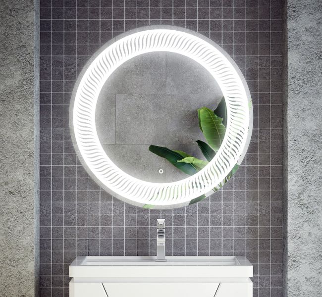 Зеркало "Парма-круг" оснащено LED-подсветкой, сенсорным выключателем с регулировкой яркости. Класс защиты: IP67. Класс энергетической эффективности: A++. Серебряное зеркало, стекло высшего качества M1. AC/DC трансформатор.