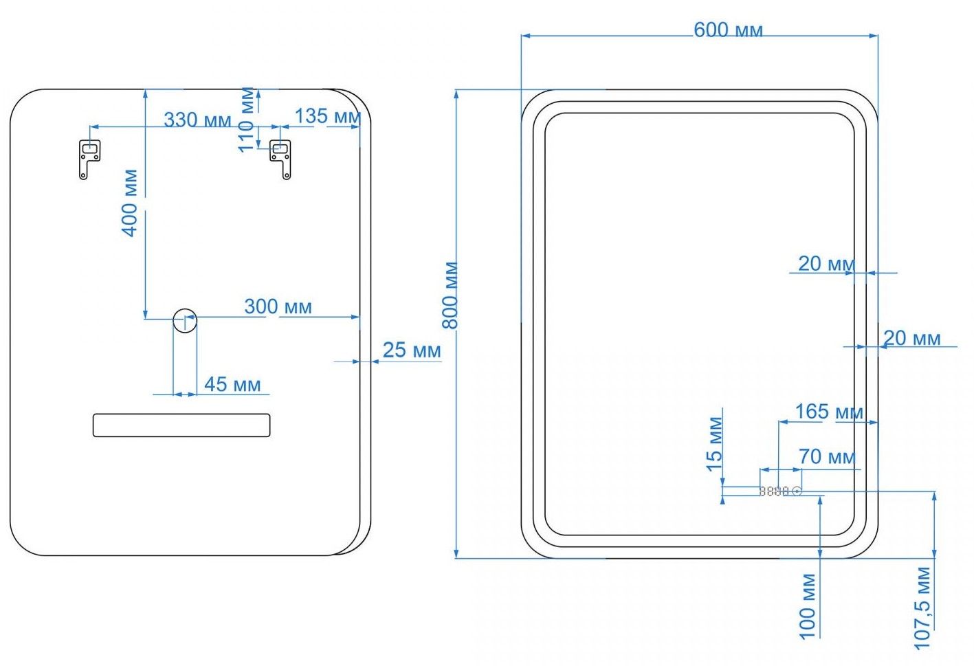 • Толщина рамки: 20 мм