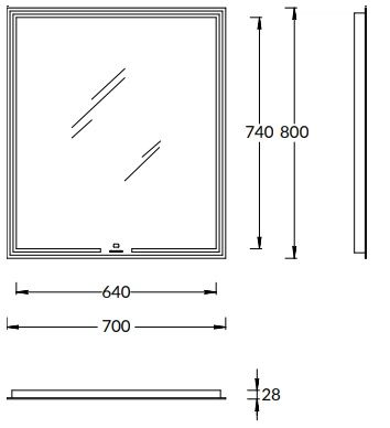 Зеркало MiO выполнено с деликатной подсветкой по периметру. Светодиодная подсветка включается одним прикосновением к сенсору в нижней части зеркального полотна, там же нанесён логотип KERAMA MARAZZI. Имеется встроенный диммер.
