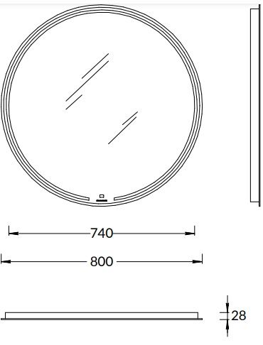 Зеркало MiO выполнено с деликатной подсветкой по периметру. Светодиодная подсветка включается одним прикосновением к сенсору в нижней части зеркального полотна, там же нанесён логотип KERAMA MARAZZI. Имеется встроенный диммер.