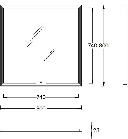 Зеркало MiO выполнено с деликатной подсветкой по периметру. Светодиодная подсветка включается одним прикосновением к сенсору в нижней части зеркального полотна, там же нанесён логотип KERAMA MARAZZI. Имеется встроенный диммер.