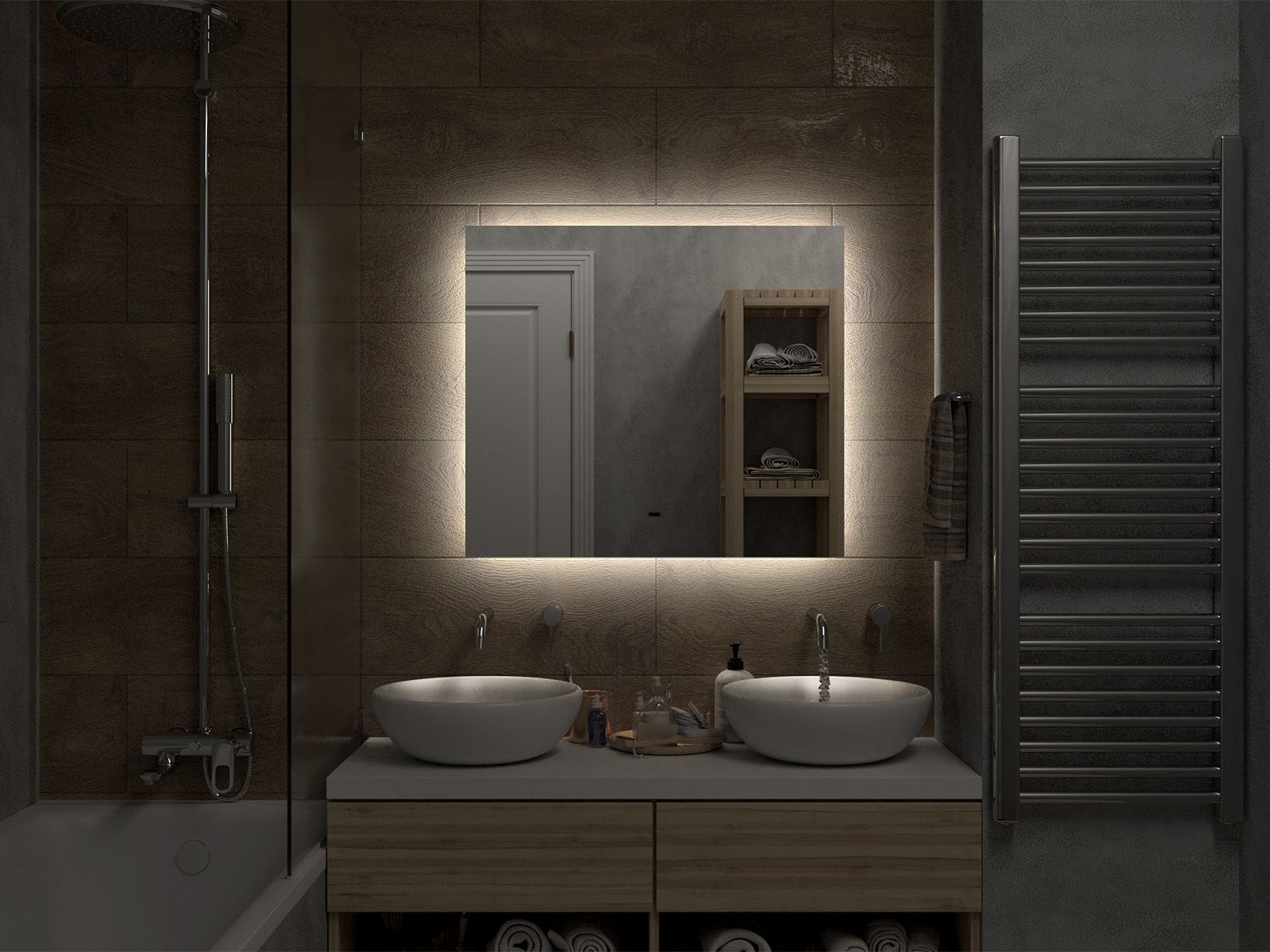 Зеркало с подсветкой для ванной комнаты — это элемент интерьера, который сочетает в себе функции, эстетику и современный дизайн. Его изящная форма и тонкие линии легко вливаются в любое пространство, создавая атмосферу утонченности и уюта.Интегрированная светодиодная подсветка обрамляет зеркало, даря мягкий, рассеянный свет, который не только позволяет удобно наносить макияж, но и наполняет ванную комнату теплом и позитивной энергией.Классический дизайн позволяет использовать его в различных стилях – от минимализма до современного эклектичного оформления. Оно прекрасно вписывается в любую цветовую гамму, будь то нейтральные тона или более яркие акценты.