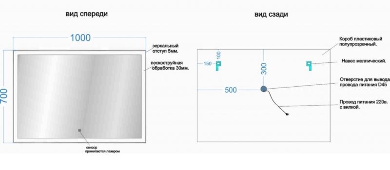 Тип:зеркало с подсветкой
