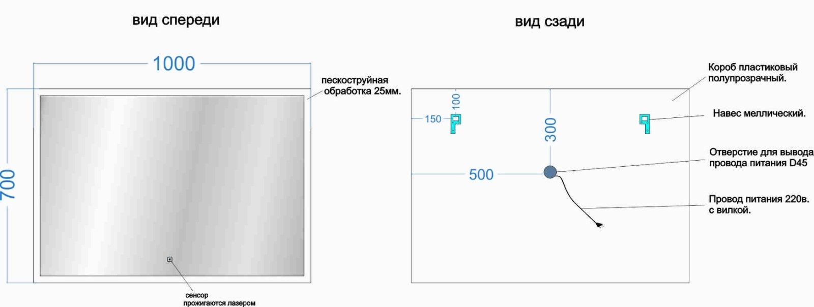 Размеры (ШхВхГ): 1000х700х25 мм.
