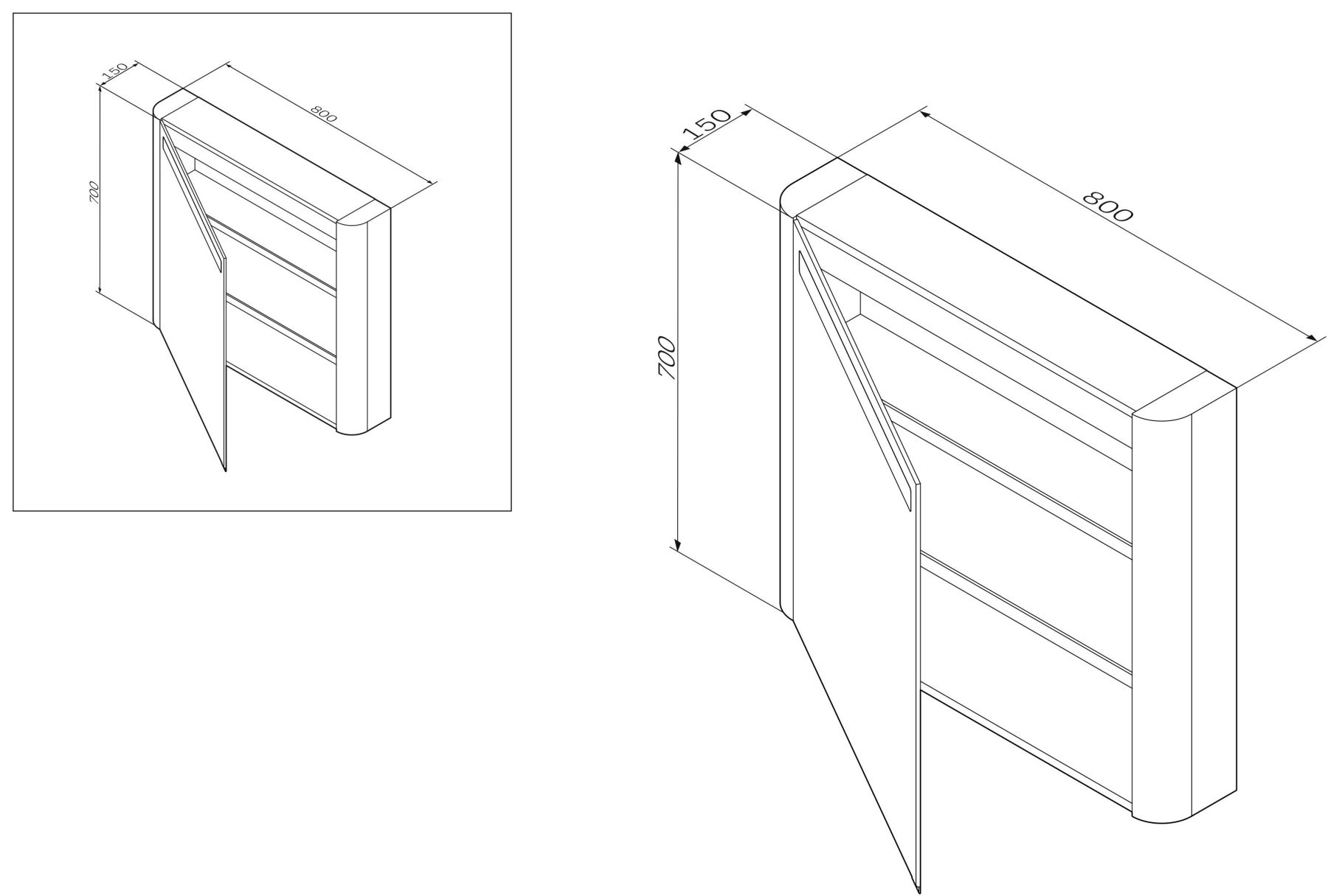 M30MCL0801WG Sensation, зеркало, зеркальный шкаф, левый, 80 см, с подсветкой, белый, глянец