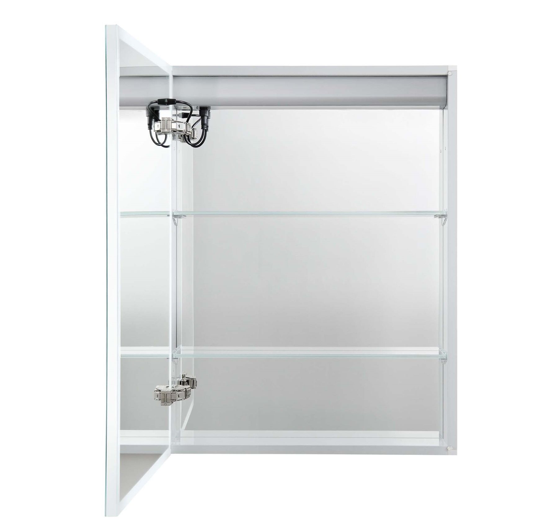 Габариты (Д В Ш), мм: 600*800*133Алюминиевый зеркальный шкаф с подсветкойФорма: прямоугольнаяМонтаж: подвесной, монтируется на поверхность или в нишуОдна зеркальная дверца. Двусторонняя зеркальная дверь и зеркальные боковиныДве стеклянные полки 8 мм.Материал: алюминийЦвет: хромЗеркальный салонКруговая подсветка SMD 2835-120P, цветовая температура 2500K/6500KФункция антизапотевания2 режима переключения света/ цветаСенсорное управлениеКонструкция дверцы позволяет устанавливать ее так, чтобы она открывалась в нужную вам сторонуПетли BLUM, открывание 95 градусов с доводчиком, обеспечивающим плавное закрываниеМебель поставляется в собранном видеДополнительное оснащение зеркала: подвесыГарантия: 1 год