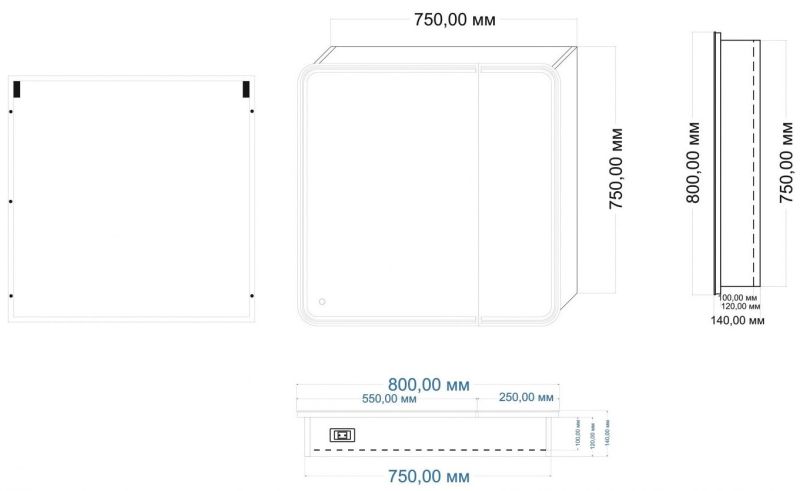 - Размер шкафчика: 750х750х100 мм