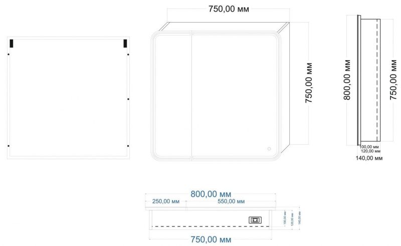 • Размер шкафчика: 750х750х100 мм