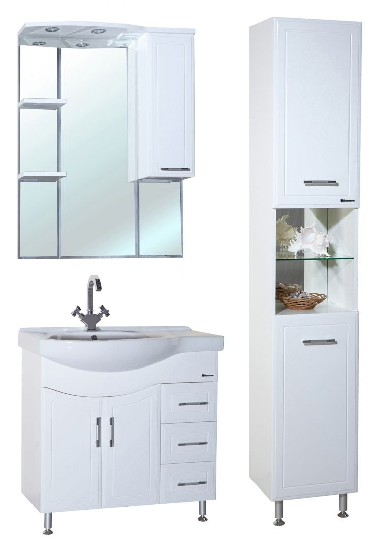 Зеркало-шкаф с подсветкой Bellezza Коралл 85см правый белый 00000001082 купить