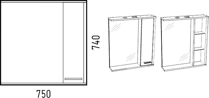 Зеркало-шкаф с подсветкой Corozo Лорена правый 75см лайн SD-00000297