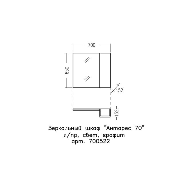 Зеркальный шкаф СаНта Антарес 700522, 70 см с подсветкой, графит матовый